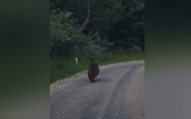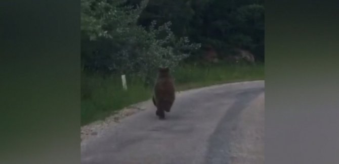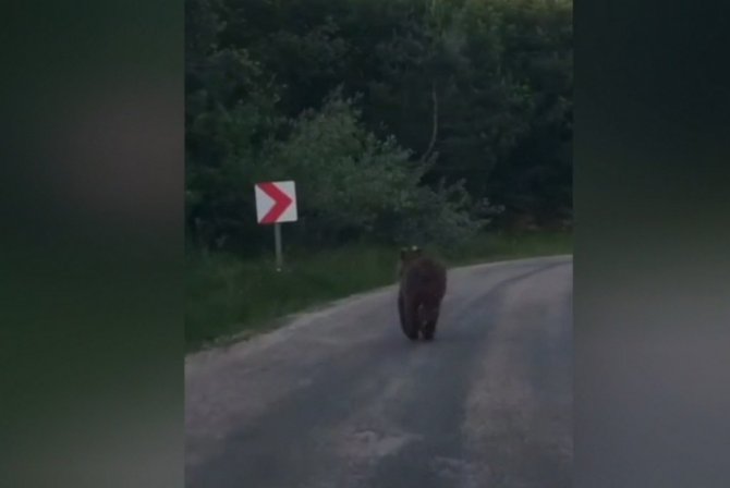 Kırsal Sultaniye Mahallesi'nden İnegöl'e seyir halinde olan sürücü, aniden önüne çıkan yavru ayıyı görünce kısa süreli şaşkınlık yaşadı. Sürücü, telefonuyla yavru ayıyı görüntüledi. Ayı yol üzerinde koşarak ormanlık alana kaçarken, sürücü daha sonra yoluna devam etti.