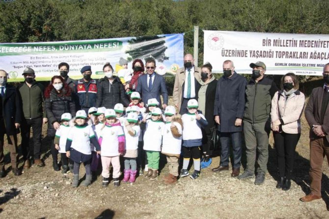 Orhangazi Orman İşletme Şefliği nezaretinde Orhangazi'de bu yıl 11 Kasımda 5 bin adet fıstık çamı toprakla buluştu. Protokol üyeleri öğrencilerle birlikte fidanları toprağa yerleştirip ilk can suyunu da verdi.