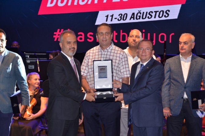 Bursa Büyükşehir Belediye Başkanı Alinur Aktaş ve BKSTV Başkanı Özer Matlı daha sonra festivale katkı sağlayan sponsorlara teşekkür ederek plaketlerini takdim etti. Başkan Aktaş ve BKSTV Başkanı Matlı, Uludağ Premium adına Ömer Kızıl, Durmazlar adına Hüseyin Bülbül, BTSO adına Aytuğ Onur, Atış Yapı adına Ahmet Atış, Kumova İnşaat adına Beren Toker, Hayat Hastanesi adına Fatih Özkul, Abidin Usta adına Şakir Özen, Özhan Marketler Zinciri adına Elif Özhan, BU Piliç adına Onur Özkul, DOSABSİAD adına Nilüfer Çevikel, Güngör Turizm adına Ahmet Güngör, Royal Hotel adına Orhan Çapar, Ömür Bozası adına Atakan Kuşku, Okul Etiketi.com adına Zerrin Fitöz, Biletini Al adına, Numan Çatmakaş'a teşekkür ederek plaketlerini sundu. Konuşmaların ve teşekkürlerin ardından Türkiye'nin en uzun soluklu festivali Şef Dağhan Doğu yönetimindeki Bursa Devlet Senfoni Orkestrası ve Tenor Hakan Aysev'in muhteşem sesiyle başladı. İzleyicilerin sanat dolu bir akşamı yaşadığı gecede Hakan Aysev, "Bursa benim için çok önemli. Bir süre okudum. Bursa senfonisinin ilk konserini de ben yapmıştım. Böylesine zorlu bir ortamda 1,5 sene aradan sonra bu festivali oluşturabildikleri için Bursa Büyükşehir Belediye Başkanı Alinur Aktaş ile BKSTV Başkanı Özer Matlı'ya teşekkür ediyorum" dedi. Gece boyunca en sevilen eserleri Bursa Devlet Senfoni Orkestrası'nın müziği eşliğinde Bursalılar için seslendiren Hakan Aysev, seyircilerin büyük beğenisini topladı. Konser sonrası sanatçı Hakan Aysev'e teşekkür plaketini BKSTV Başkanı Matlı ile Bursa Filarmoni Derneği Başkan Yardımcısı ve Uludağ İçecek Yönetim Kurulu Başkanı Ömer Kızıl verdi.