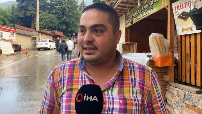 Ali Böcek isimli vatandaş, "Her sene burada sel oluyor. Selden dolayı eşyaları sürüklüyor. Bunun içinde hediyelik eşya ve meyveler var. Bundan dolayı çok mağduruz. Yollara her taraftan saçlar saçıldı. Ufak hediyelik tezgahlar var bizim burada selle birlikte suya karışarak sürüklendi. Dükkanları sular çok az bastı" dedi.