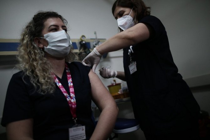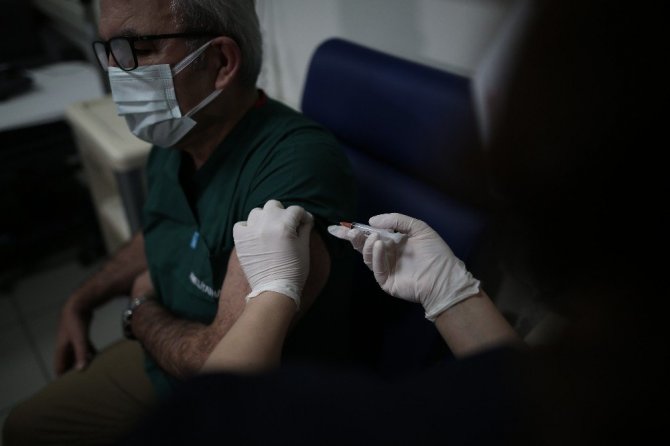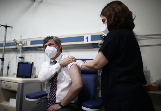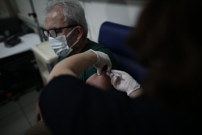 Bursa’da sağlık çalışanlarına aşılama çalışması başlatıldı, ilk aşı başhekime