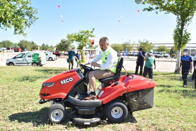 Başkan Aktaş, konuşmasının ardından çim biçme makinesine binip, çimleri sürdü. Daha sonra Büyükşehir ailesine yeni katılan personellerle sohbet etti.