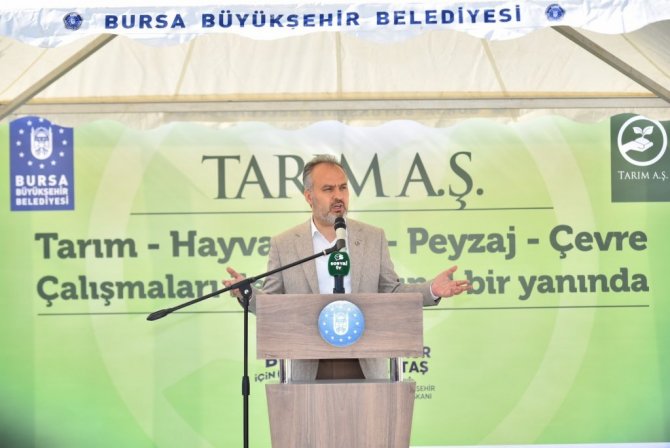 Bursa Tarım ve Peyzaj A.Ş'nin yeni çalışma alanlarının kamuoyuna duyurulması amacıyla düzenlenen toplantıya katılan Bursa Büyükşehir Belediye Başkanı Alinur Aktaş, şirket bünyesine yeni katılan 400 personele hitap etti. Tarım A.Ş'nin 2023 yılına kadar 5 milyon fidan dağıtımı hedefiyle çalışmalarına aralıksız devam ettiğini dile getiren Başkan Aktaş, "Bu projede yaban mersini, ahududu, aronya gibi fideleri çiftçimizle birlikte toprakla buluşturuyoruz. Aynı zamanda pazar sıkıntısı yaşayan çiftçimize incir, yaban mersini gibi ürünlerde alım garantili sözleşmeler yaparak pazar ihtiyacını çözmüş olacağız. Hayvancılık noktasında ise küçükbaş hayvancılığı desteklemeye yönelik şu an çalışmakta olduğumuz 96+4 koyun - koç desteğini yakın zamanda açıklayacağız. TARIM A.Ş, bundan böyle, tarım ve hayvancılık faaliyetlerinin yanı sıra yeni bir alanla Bursa'mıza hizmet verecek. Bu doğrultuda şirketimiz, Bursa Büyükşehir Belediyesi'ne ait tüm yeşil alanlarının bakımı, temizliği ve sulamasını kendi bünyesine kazandırdığı personel ve araç ekipmanlarla yürütecek" dedi.