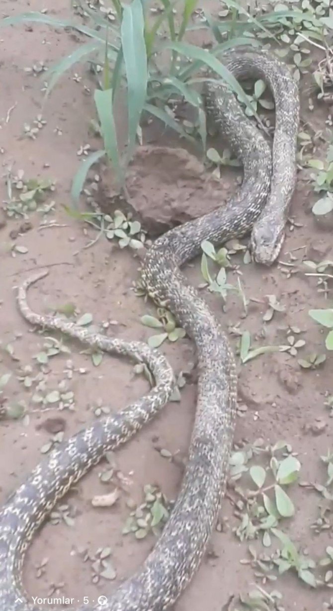 Bursa'nın İznik ilçesinde tarlasında 2 metrelik dev yılanı gören çiftçi önce şok oldu. Çiftçi o anları sosyal medya hesabından paylaştı ve bolca beğeni aldı.