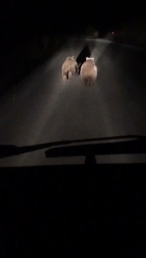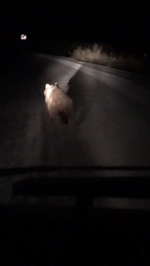 Bursa'nın Osmangazi ilçesinde gece yarısı yola inen iki yavru ayı şoför tarafından cep telefonu ile kaydedildi.