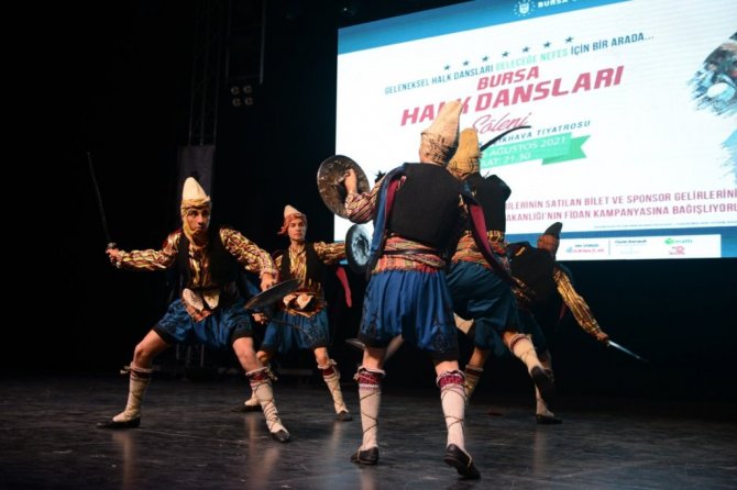 Bursa'daki folklor toplulukları, Bursa Büyükşehir Belediyesi ve Bursa Kültür Sanat ve Turizm Vakfı (BKSTV) işbirliğinde gerçekleştirilen programda "Geleceğe Nefes" için Açık Hava Tiyatrosu'nda bir araya geldi.