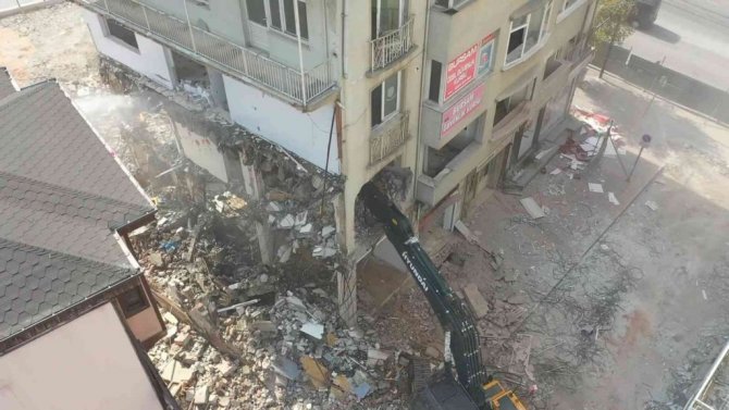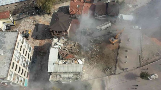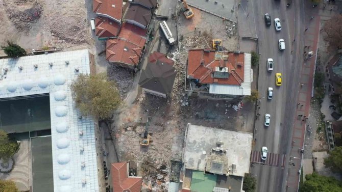 Bursa’nın tarihini gölgeleyen binaların yıkımı drone ile görüntülendi