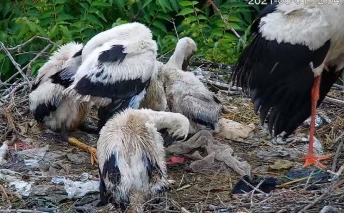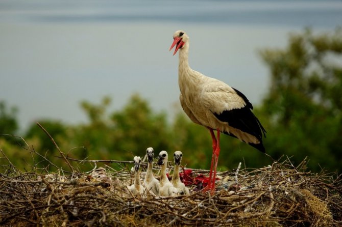 Türkiye'nin gözbebeği haline gelen Bursa'nın Karacabey ilçesine her sene göç eden Yaren leylek, son 15 günde gelişip yuva içerisinde ayaklanan yavrularıyla görüntülendi.