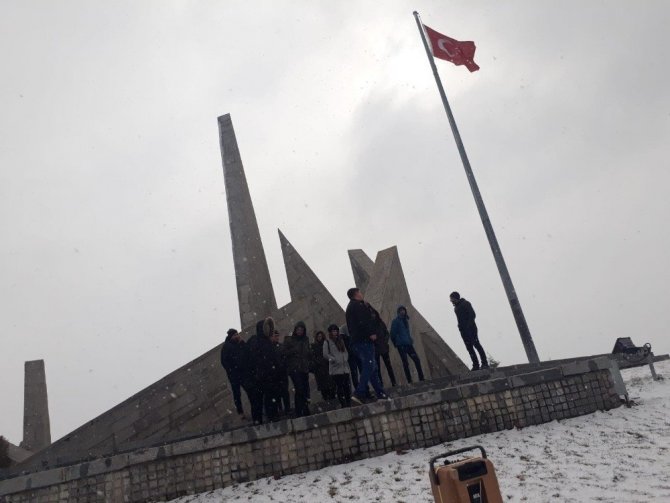 Öğrenciler ilk olarak Dumlupınar ilk hedef anıtında ’’Ordular ilk hedefiniz Akdeniz’dir ileri’’ emri verdiler.
