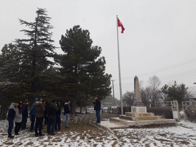 Şehitlikte dua eden öğrenciler daha sonra Alan Kılavuzu Habib Akalın’dan bilgiler aldılar.