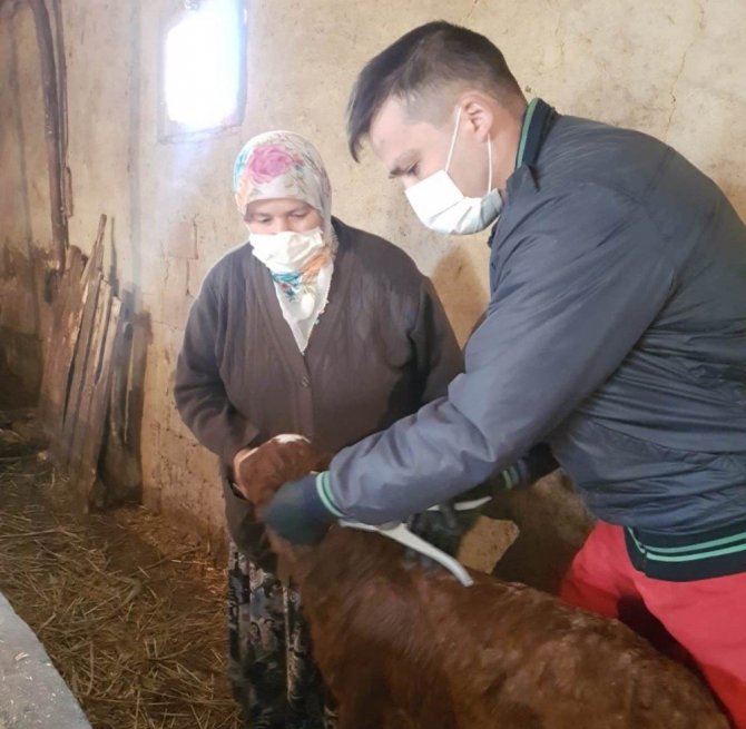 Tarım ve Orman Müdürlüğü Hayvan Hastalıkları Koruma ve Kontrol Programı kapsamında ilçe ve köylerdeki büyükbaş hayvanlara Veteriner Hekim Cihan Şen, Muhammet Güneş ve Veteriner Sağlık Teknikeri Adem Tutuk tarafından gerçekleştirilen aşılama çalışmalarında 4 bin 500 hayvana Şap ve LSD aşısı yapılması planlanıyor.
