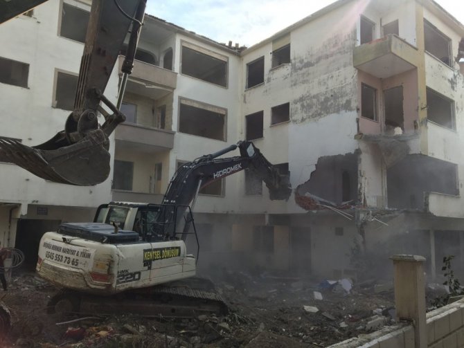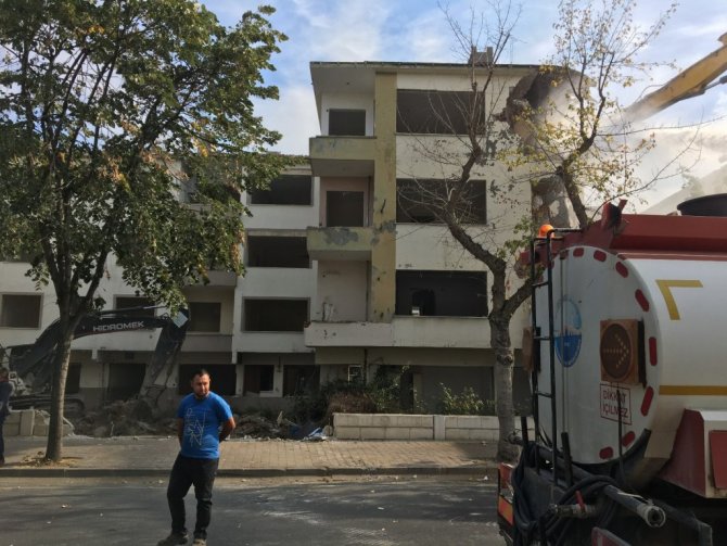 Büyükçekmece’de deprem riski taşıyan hasarlı binaların yıkımı sürüyor