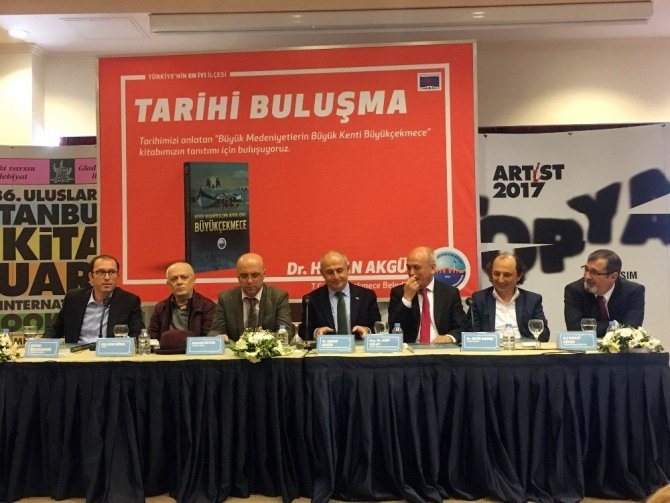 Büyükçekmece’nin geçmiş tarihine ışık tutan “Büyük Medeniyetlerin Büyük Kenti Büyükçekmece” isimli kitap, TÜYAP 36’ncı Uluslararası İstanbul Kitap Fuarı’nda tanıtıldı. Büyükçekmece’nin tarihi ve bilinmeyenleri gün ışığına çıkartan kitap, 9 kişilik uzman bir ekibin Makedonya’ya kadar ulaşan Osmanlı Arşivleri’nden elde ettikleri bilgileri içeriyor. TÜYAP 36’ncı Uluslararası İstanbul Kitap Fuarı Interexpo Salonu’nda gerçekleşen tanıtım toplantısına Büyükçekmece Belediye Başkanı Dr. Hasan Akgün’ün yanı sıra Belgesel Yapımcısı Cengiz Özkarabekir, Gazeteci Yazar Yönetmen Ali Murat Güven, Tarihçi Doç. Dr. Arif Kolay, Yazar Haldun Hürel, Yazar Yayıncı Dr. Şefik Memiş, protokol üyeleri ve çok sayıda vatandaş katıldı. Büyükçekmece’nin geçmiş tarihinin gün yüzüne çıktığı kitap katılımcılardan yoğun ilgi gördü.
