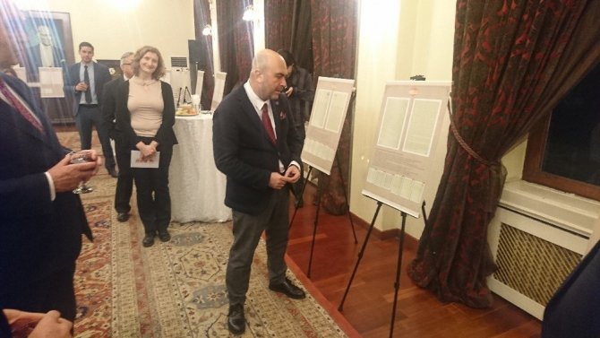 Furat, Ukrayna hükümeti ile çok uzun zamandır temaslarının olduğunu belirterek, “Büyükelçi beyler Ukrayna ile ilişkilerimizin 100.yılı için ve aynı zamanda 25.yılı bir arşiv sergisi organize etmemi istediler. Bende böyle bir sergi organize ettim. Serginin teması 1918-1921 arasında Osmanlı ve Ukrayna arasında gelişmiş olan diplomatik ilişkilerin arşiv kaynakları. İki arşivden yararlandık. Bir tanesi Osmanlı arşivimiz, bir tanesi de Ukrayna devlet arşivleri. Her ikisi de Ukrayna’nın belki unutulmuş tarihinin tekrar yazılması için çok değerli kaynakları ihtiva ediyorlar. Salonda yer alanlar Osmanlı arşivinden aldığımız belgeler, belgelerin okunuşları da karşılarında dijital olarak üretildi. Benim burada kullandığım bir teknik. Burada belgelerin her bir noktasının aynaymış gibi karşıda yansıması söz konusu. Alt tarafında da nasıl belge dosyalarından belgelerin karşımıza çıktığını gösteriyor” ifadelerini kullandı.