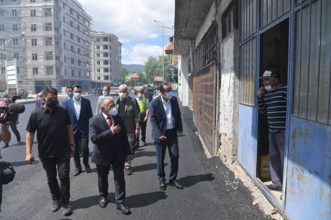 Başkan Büyükkılıç, yol yapım çalışmalarının ardından esnafı ziyaret edip hayırlı işler dilerken, vatandaşlarla da sohbet etti.