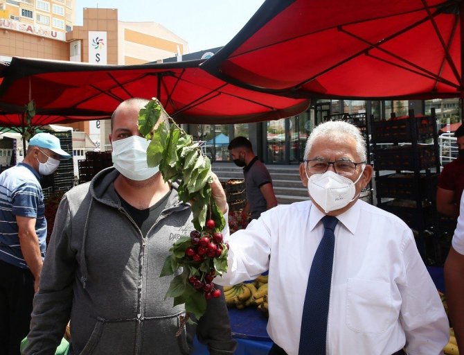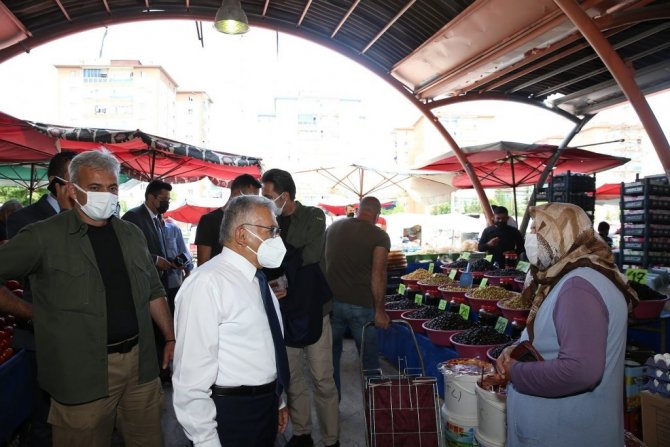 Büyükkılıç, pazarda fiyatların uygun olduğunu belirterek, "Fiyatlar uygun, mallarımız kaliteli, gerçekten çeşit bol, ürünler de bereketli. Esnaflarımıza hayırlı işler dilerken, sağduyulu hareket edip, kurallara uyup, pandemi sürecini daha hafif bir hasarla atlatma yönünde irade gösteren hemşehrilerimize de ayrıca teşekkür ediyorum. Sağ olsunlar, var olsunlar" diye konuştu.