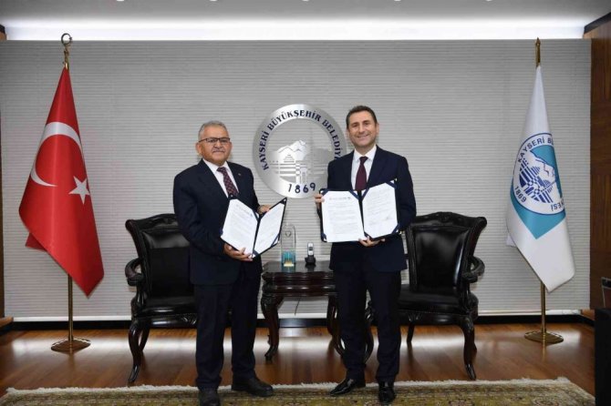 Kayseri Büyükşehir Belediye Başkanı Dr. Memduh Büyükkılıç ile Tarım ve Orman Bakanlığı'na bağlı Tarımsal Araştırmalar ve Politikalar Genel Müdürlüğü Bahri Dağdaş Uluslararası Tarımsal Araştırma Enstitüsü Müdürü Fatih Özdemir arasında iklim değişikliği ve kuraklıkla mücadele kapsamında tarım ve hayvancılığı geliştirmek amacıyla ortak iş birliği protokolü imzalandı.