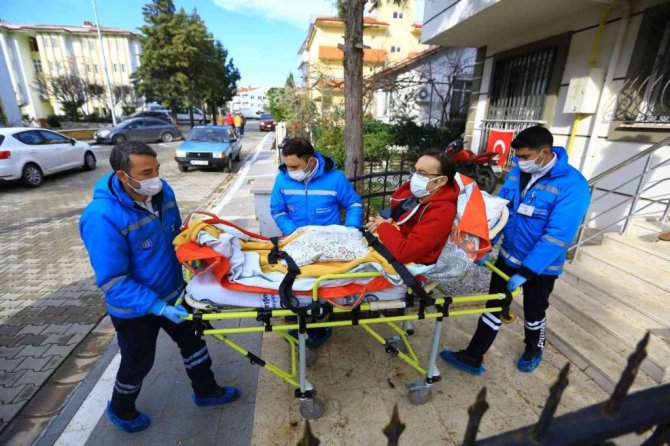 Muğla Büyükşehir Belediye ekipleri Ramazan Bayramı süresince evde bakım ve hasta nakil ambulansı ile vatandaşın hizmetinde olacak. Bayram tatili süresince vatandaşların talep etmeleri halinde her türlü pansuman, enjeksiyon, ilaçların temini gibi birçok sağlık ihtiyacı Büyükşehir Belediyesi sağlıkçıları tarafından karşılanacak. Ayrıca hasta nakil ambulansı ile hastaneye gitmesi gereken acil hastalar evlerinden alınıp muayenesi yapıldıktan sonra tekrar evlerine bırakılacak. Herhangi bir aksaklık ve vatandaşların taleplerini hızlıca yerine getirmekte köprü görevi gören çağrı merkezi ekipleri de bayram tatilinde 24 saat boyunca hizmet vermeye devam edecek. Muğla Büyükşehir Belediyesi evden çıkamayan yatağa bağımlı ve ihtiyaç sahibi vatandaşların yaklaşan Ramazan Bayramı öncesinde saç ve sakal tıraşlarını yapıyor.