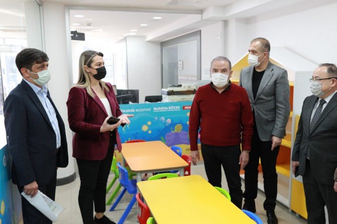 Aile Sağlığı Merkezinde yer alan yetişkin ve çocuk diş ünitelerini inceleyen ve bilgi alan Başkan Böcek, "Önce sağlık, önce insan parolasıyla Kepez'imize kazandırmış olduğumuz sağlık merkezini, halkımızın hizmetine sunmadan önce inceledik. Daha önce Sütçüler'de hizmet veren Çocuk Ağız Diş Sağlığı Merkezi'ni daha merkezi bir yer olan Otogar Kavşağı'na taşıdık. Sütçüler'deki Ağız Diş Sağlığı Merkezi'nde 5-14 yaş arası çocuklarımıza hizmet veriyorduk. Şimdi burada yetişkinlere de hizmet vereceğiz. 5'i yetişkinlere 5'i çocuklarımıza olmak üzere 10 diş hekimimiz hizmet verecek. Evde Sağlık Birimimiz de bu binamızda olacak" dedi.