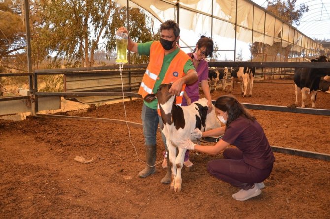 Tarımsal Hizmetler Dairesi Başkanlığı ekipleri de hasar tespit çalışmalarını sürdürüyor. Ekipler yangında zarar gören yerleşim yerlerindeki vatandaşların hayvanları ve tarım alanlarındaki zararları tespit ederek rapor hazırlıyor. Büyükşehir veterinerleri ise Evrenseki Kalemler Mahallesi ve Manavgat Hayvan Pazarında toplanan büyük ve küçükbaş hayvanları muayene ederek, yangından zarar gören hayvanlara serum vererek, iğne yapıyor. Ayrıca yangın mahallinde incelemede bulunan ekipler yabani hayvanlardan zarar gören olup olmadığı konusunda tarama çalışması yapıyor.