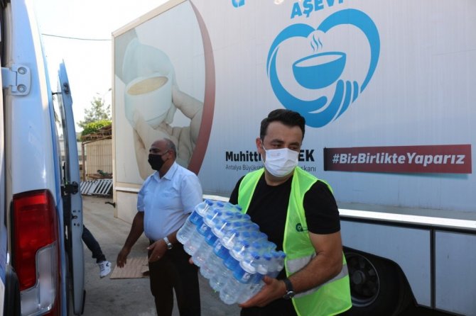 Antalya Büyükşehir Belediyesi Sosyal Hizmetler Dairesi Başkanlığına bağlı ekipler bölgede yoğun bir çalışma gerçekleştiriyor. Sosyal Hizmetler Dairesi Başkanlığı'na bağlı Mobil Aşevi yangının çıkışından bu yana yangından zarar gören vatandaşlar ile bölgede çalışan ekiplere yemek dağıtımı yapıyor. Mobil araçlar eşliğinde ise su, ayran, çorba meyve suyu ve sandviç ekmek dağıtımı aralıksız devam ediyor. Antalya Büyükşehir Belediyesi koordinesinde kurulan bağış merkezine yapılan yardımlar da sosyal hizmetler ekipleri aracılığıyla bölgedeki ihtiyaç sahiplerine ulaştırılıyor.