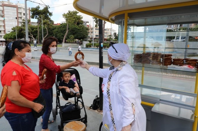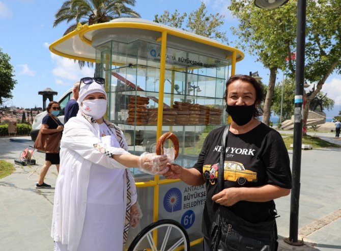 Yeni nesil simit tezgahları teslimine Cumhuriyet Meydanı'ndaki esnaftan başlandı. Esnafı yazın güneşten kışın yağmurdan koruyacak, hijyen, modern ve şık simit tezgahları esnaf ve vatandaşların büyük beğenisini topladı. Altı yıldır Cumhuriyet Meydanı'nda simit satışı yapan Yasemin Yalçın, "Antalya'mıza ve Cumhuriyet Meydanımıza daha yakışan bir görüntü oldu. Yeni tezgahlarımız daha geniş, korunaklı ve hijyenik. Böylece hem vatandaşlarımıza hem de turistlere sağlıklı ve kaliteli hizmet sunacağız. Yeni simit tezgahlarımız estetik görüntüsüyle turistlerin de ilgisini çekecek. İnşallah pandemi nedeniyle duran satışlarımız yeni tezgahlarımızla artar" dedi.