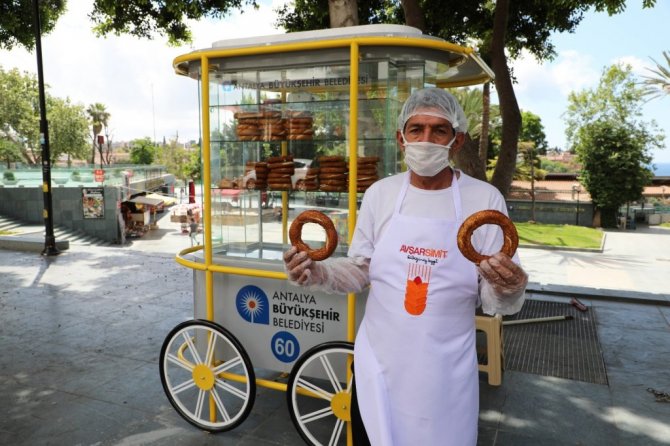 Antalya Büyükşehir Belediyesi tarafından simitçi esnafının daha hijyen ve modern koşullarda satış yapabilmeleri için üretilen yeni simit tezgahları esnafa teslim edilmeye başlandı.
