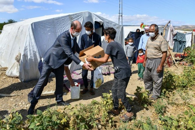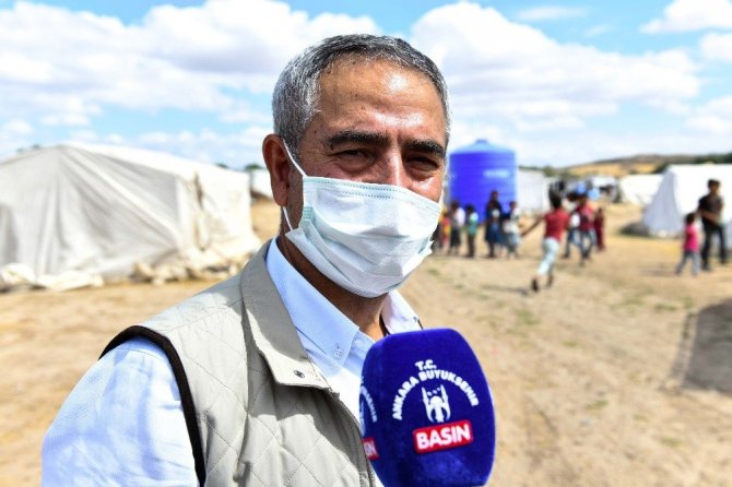 Çimşit Mahallesi yakınlarındaki tarım alanlarına kurdukları çadırlarda kalabalık aileler olarak yaşayan tarım işçilerine yardımları sürekli hale getireceklerini vurgulayan Aslan, “Tarım işçisi olarak çalışan, özellikle Şanlıurfa Harran, Akçakale’den gelen yurttaşlarımız yaz boyu burada kalıyorlar. Zor şartlar altında sebze ve meyve üretimi için çalışıyorlar. Çadırlarda kalıyorlar. Ankara Büyükşehir Belediyesi olarak dezenfektan ve maske yardımında bulunup, onlarla hasbihal edeceğiz. Dertlerini dinleyip, gelecek yıl bu sorunları çözülmüş olarak daha rahat etmelerini sağlayacağız. Bundan sonra da belli zaman aralıklarında maske ve dezenfektan yardımlarımız devam edecek” diye konuştu.