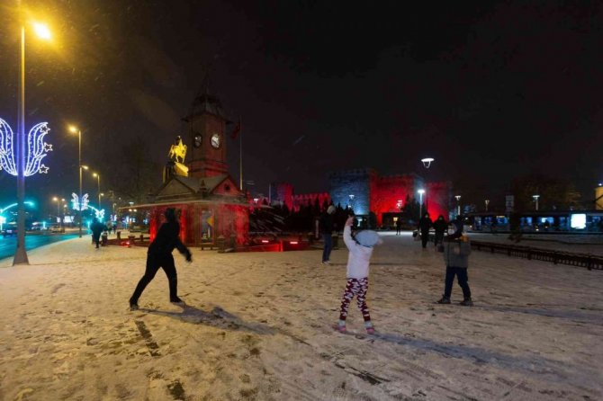 Kayseri Büyükşehir Belediyesi, merkez ve ilçelerde 7 noktada gece gündüz demeden karla mücadelesine devam ederken, Kayserililer de yağan kar yağışı ile birlikte karın keyfini doyasıya çıkardı.