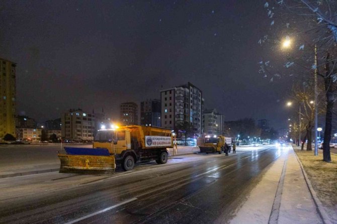 Kayseri Büyükşehir Belediyesi, merkezde Fen İşleri Daire Başkanlığı, ilçelerde Kırsal Hizmetler Daire Başkanlığı karla mücadele ekipleri, toplam 128 araç ve 291 personel ile karla mücadelesini sürdürüyor. Kayseri Büyükşehir Belediyesi ekipleri, 24 saat çalışma esasına göre karla mücadelesine aralıksız devam ederken, dün etkisini gösteren kar yağışı sonrası, ekipler ana arter, cadde ve sokaklarda kar temizleme ile tuzlama çalışmaları yaptı.