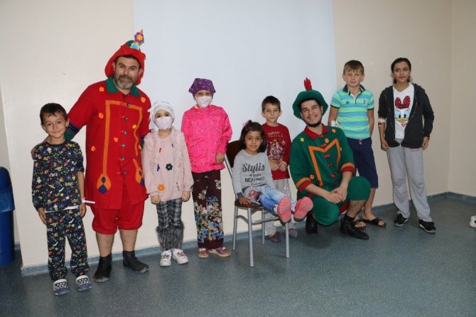 Ziyarette çocuklarla yapılan görüşmelerin ardından Manisa Büyükşehir Belediyesi Şehir Tiyatrosu oyuncuları çocuklar için hazırladıkları ‘Karagöz ve Hacivat’ isimli tiyatro oyununu canlandırdı. Oyun sırasında da çocuklarla birebir iletişime geçen oyuncular çocukların bolca eğlenerek moral sahibi olmalarına destek verdi.