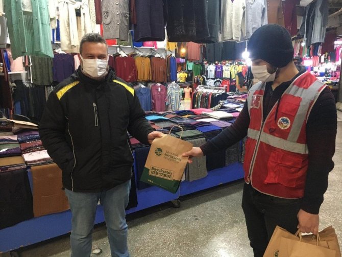Sakarya Büyükşehir Belediyesi salgın destek paketlerini hane ve esnaflara ulaştırmaya devam ediyor. Korona virüs salgının görüldüğü dönemde maske üretimine başlayan Büyükşehir Belediyesi, 16 ilçe ve şehir merkezinde salgın destek paketlerini vatandaşlarla buluşturuyor. Dağıtım ekipleri Katlı Pazar esnaflarına 3 bin 500 hijyen paketini dağıtırken, Pabuççular Mahallesindeki hanelere ulaşarak 2 bin hijyen paketini vatandaşlara teslim etti. Büyükşehir Belediyesi'nden yapılan açıklamada, "Maske, mesafe ve hijyen kurallarına riayet ettiğimiz sürece salgının biteceğine inanarak korona virüs ile mücadelemizi sürdürüyoruz. Tüm vatandaşlarımızı maske, mesafe ve hijyen kurallarına riayet göstermesini önemle rica ederiz" ifadelerine yer verildi.