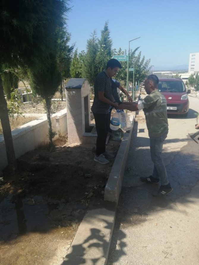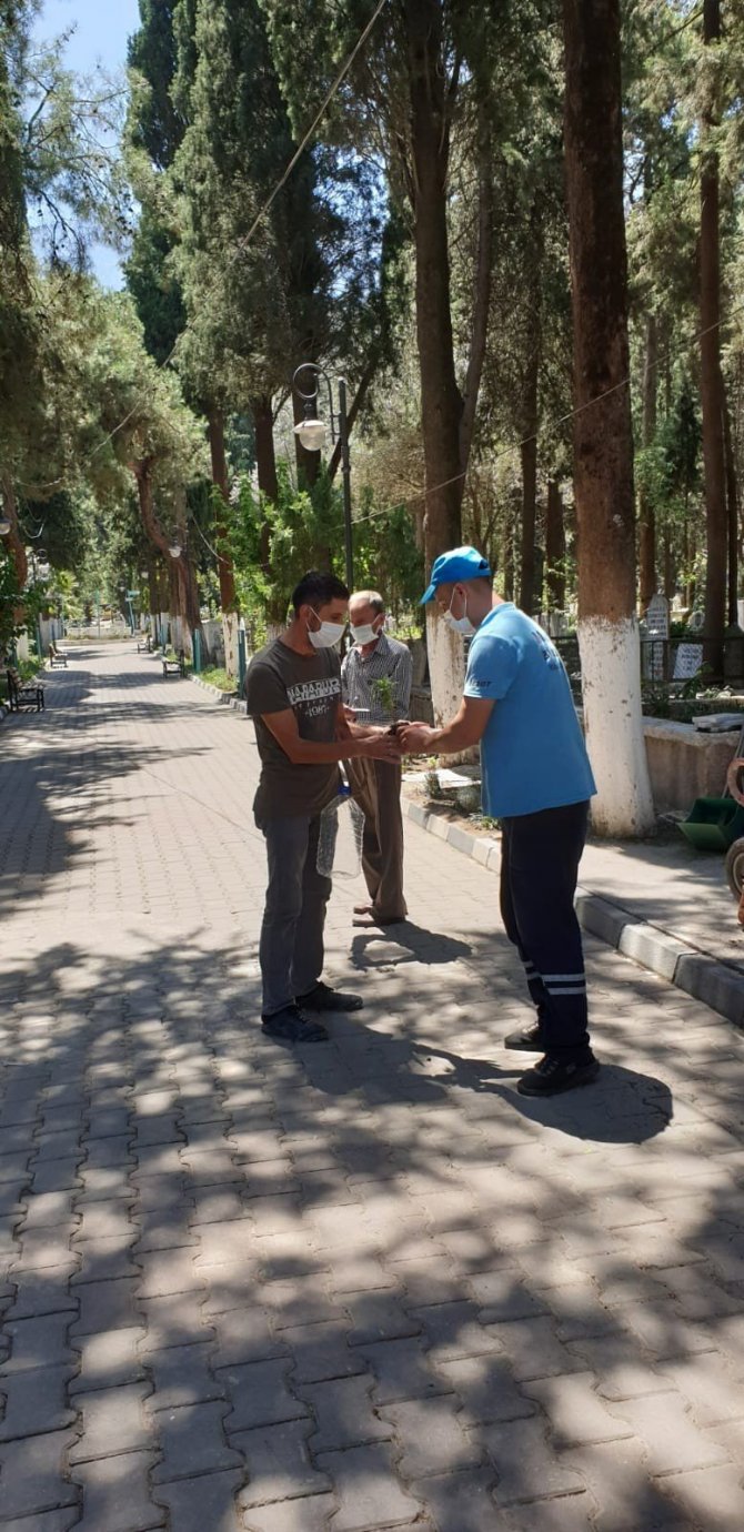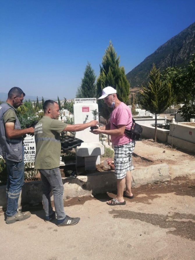 Kurban Bayramı öncesinde il genelinde bulunan mezarlıkların temizlik, bakım ve onarım çalışmalarını hassasiyet içerisinde yürüten Manisa Büyükşehir Belediyesi, kabir ziyaretlerine gelen vatandaşlara Büyükşehir Belediyesinin Karaoğlanlı Mahallesi'nde bulunan serasında yetişen çiçeklerden hediye etti.