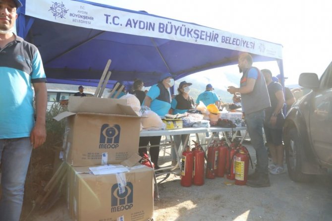 Aydın'ın Çine ilçesinde meydana gelen orman yangını ile mücadele çalışmaları aralıksız devam ederken, Aydın Büyükşehir Belediyesi de tüm birimlerindeki ekipleri ile yangın bölgesinde destek oluyor. Yangının çıktığı ilk andan itibaren sahada çalışmalarını sürdüren Büyükşehir ekipleri, iş makinaları, itfaiye araçları ve AYBA personelleriyle yangın alanında bulunuyor. Büyükşehir Belediyesi kurduğu çadırlarla yangına müdahale etmek için sahada bulunan gönüllüler ve görevlilere ihtiyaç duyulan tüm malzemeleri temini sağlıyor. Büyükşehir Belediyesi tüm gücüyle yangın alanında çalışmalarına devam ediyor.