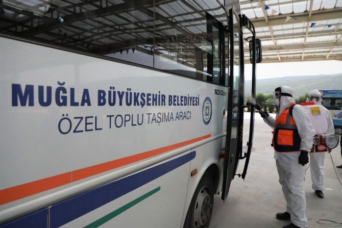 Muğla Büyükşehir Belediyesi ekipleri 164 belediye otobüsünü 33 bin 979, 11 otogarı 2 bin 400, Bin 431 özel toplu taşıma aracını 33 bin 81, 3 bin 587 otobüs durağını 25 bin 634, 2 bin 445 ticari taksiyi 37 bin 622, TM plakalı araçları 3 bin 593, S plakalı araçları 10 bin 534, 29 havaalanı aracını 3 bin 593 ve 5 limanı 811 defa dezenfekte etti. Ekipler toplamda 151 bin 247 adet dezenfekte işlemi gerçekleştirdi.