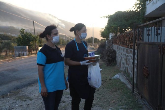 AYBA aynı zamanda yangın bölgesine yakın olan evlere de ulaşarak her gün düzenli olarak sıcak yemek dağıtımı sağlıyor.