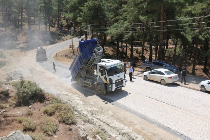 Antalya Büyükşehir Belediyesi Kaş ilçesine bağlı Sütleğen-Yuvacık-Yaylaçavdır-Yaylapalamut ve Çamlıköy grup yolunda sathi asfalt çalışmaları yapıyor.