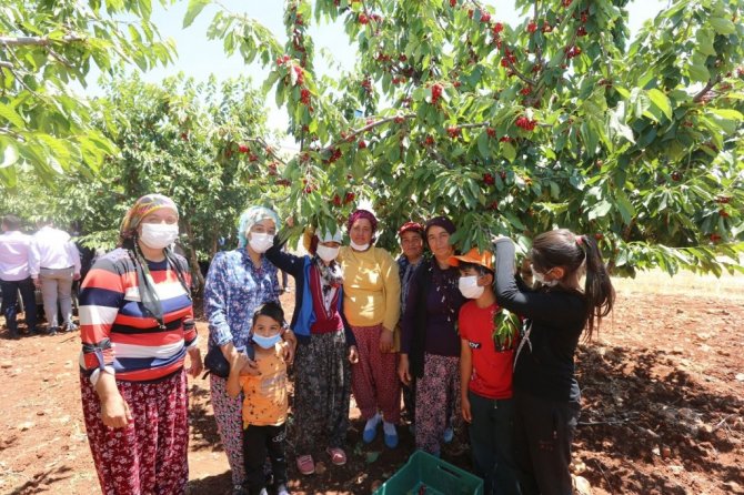 Etkinliğin devamında kadın çiftçilerle bir araya gelerek kiraz hasadına katılan Büyükşehir Belediye Başkanı Fatma Şahin, ağaçtan kiraz topladı. Çiftçilerle sohbet etti.