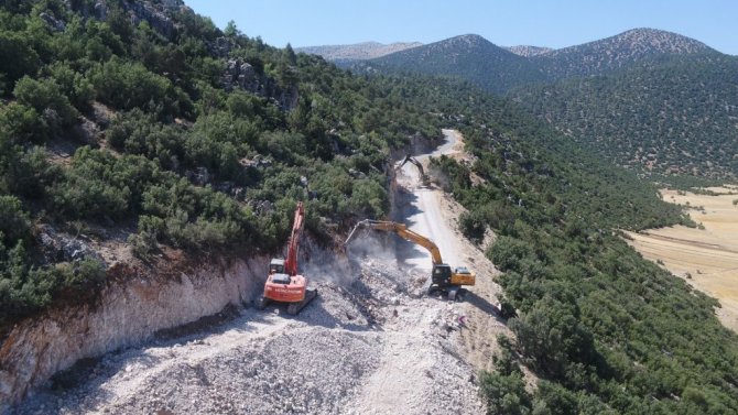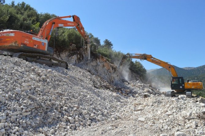 Antalya Büyükşehir Belediyesi Korkuteli'nde yol genişletme ve asfalt çalışmalarını sürdürüyor.