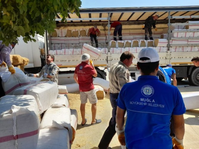 Bu güne kadar 151 ton yem, 217 ton saman dağıtımı yapan Muğla Büyükşehir Belediyesi ekipleri, toplamda üreticilere 368 ton hayvan besini desteği sağladı. Seydikemer, Kavaklıdere, Milas, Marmaris, Köyceğiz ve Menteşe ilçelerinde yapılan saman ve yem dağıtımı yangının etkisini gösterdiği birçok mahalleye ulaştırıldı. Yangın sürecinden vatandaşların ve yangın müdahale ekiplerinin ihtiyaçlarını karşılamaya yönelik uygulanan projeleri sürdüren Muğla Büyükşehir Belediyesinden süreç son buluncaya kadar bu desteklere devam edeceği aktarıldı.
