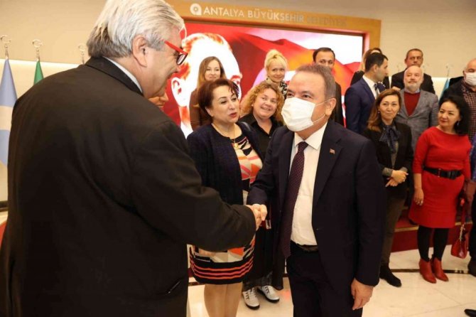 Antalya Büyükşehir Belediyesi Kültür ve Sosyal İşler Dairesi Başkanlığı tarafından gerçekleştirilecek yılbaşı festivali öncesi Antalya'da yaşayan yerleşik yabancı dernek temsilcileri Büyükşehir Belediye Başkanı Muhittin Böcek'i ziyaret etti. Başkan Muhittin Böcek, yeni yıl öncesinde Antalya'da yaşayan yabancı derneklerin kendi kültürlerini tanıtabilmesi amacıyla böyle bir etkinlik gerçekleştirdiklerini söyledi.