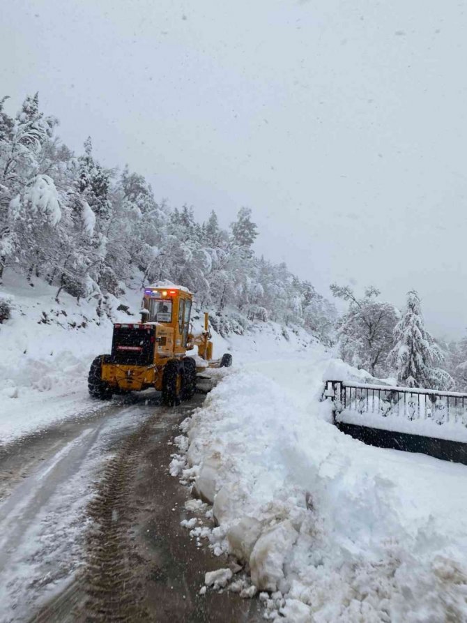 Antalya Büyükşehir Belediyesi Akseki ilçesinde gece saatlerinden itibaren başlayan kar yağışına karşı, trafikte aksama yaşanmaması adına gün boyu çalışma gerçekleştirdi. Ekipler, yollarda biriken karları greyder yardımı ile temizledi.