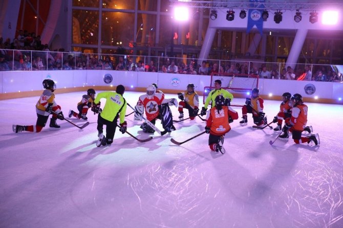 Daha sonra ise Spor A.Ş.’nin Buz Hokeyi Minikler Takımı tek tek anons edilerek piste çıktı. A kategorisinde ulusal müsabakalara katılacak olan buz hokeyi takımının gösteri maçı büyük ilgi gördü.