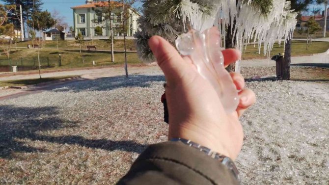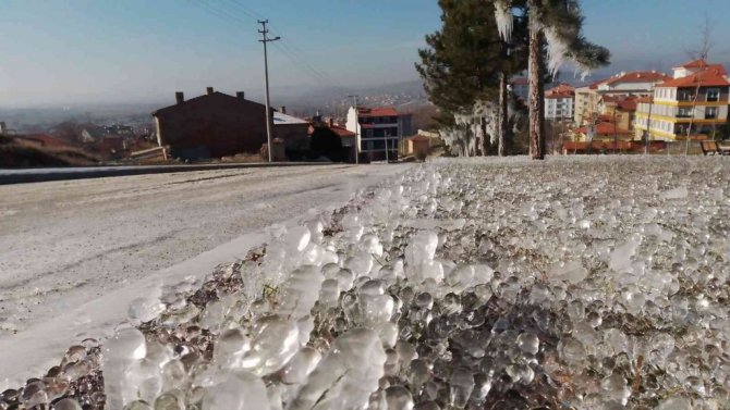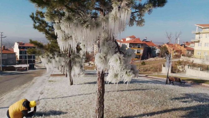Kütahya'nın Tavşanlı ilçesinde gece hava sıcaklığının sıfırın altında 12 dereceye düşmesiyle her yer buz tutarken, ortaya muhteşem görüntüler çıktı.