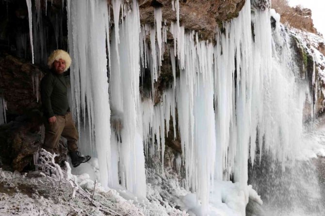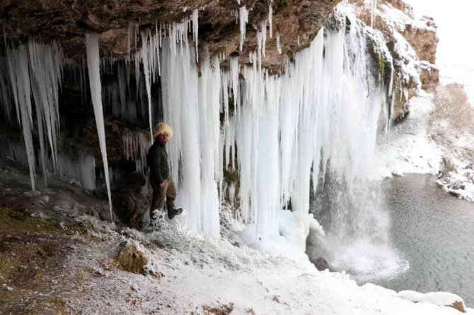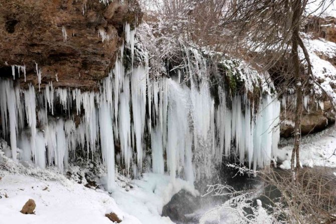 Sibirya soğuklarının yaşandığı Sivas'ta Yıldız şelalesi de buz tuttu. Şelalede oluşan metrelerce uzunluktaki buz sarkıtları dikkat çekti.