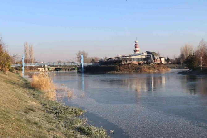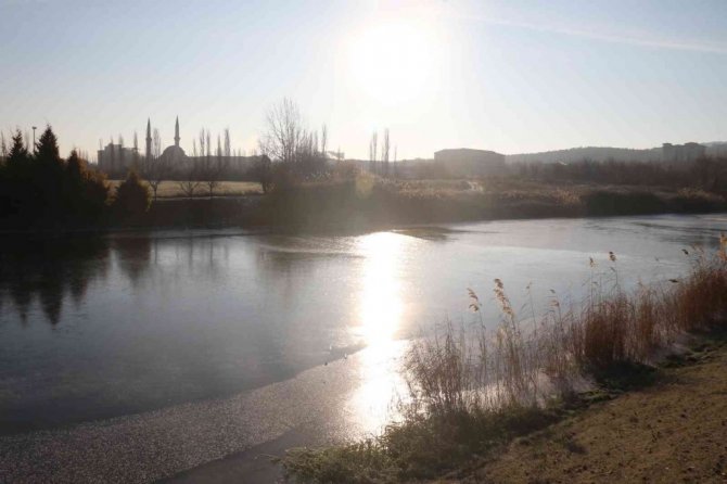 Meteoroloji 3. Bölge Müdürlüğü'nün geçtiğimiz günlerde yaptığı uyarıların ardından Eskişehir'de soğuk havanın etkisi hissedilmeye başladı. Gece saatlerinde hava sıcaklığının eksi 10 dereceye kadar düştüğü kentte, merkezden geçen Porsuk Çayı'nın yüzeyi buzla kaplandı. Soğuk havanın etkisiyle bir kısmı buz tutan çay, kartpostallık manzaralar oluşturdu. Adeta buz pistine dönen su yüzeyi ise drone ile havadan görüntülendi. Öte yandan meteorolojiden alınan bilgilere göre hava sıcaklıklarının pazar gününden itibaren yükselmesi bekleniyor.