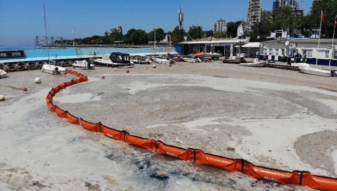 Çevre ve Şehircilik Bakanı Murat Kurum'un Kocaeli'de ODTÜ araştırma gemisi Bilim-2'deki deniz salyasıyla mücadele çalışmalarını incelediği sırada Marmara Denizi'nin birçok noktasında da çalışmalar başlatıldı. Caddebostan Sahili'ne gelen ekipler, akışkan deniz salyasının bir noktada birikmesi için denize bariyer çekti.