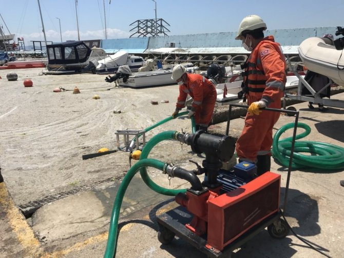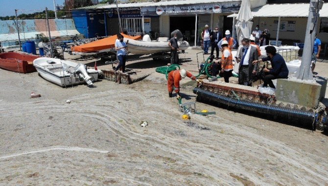 Ekipler daha sonra su üstünde kütle halinde oluşan müsilajları depolama tanklarına doldurdu. Tanklara doldurulan deniz salyalarının daha sonra bertaraf edileceği öğrenildi.