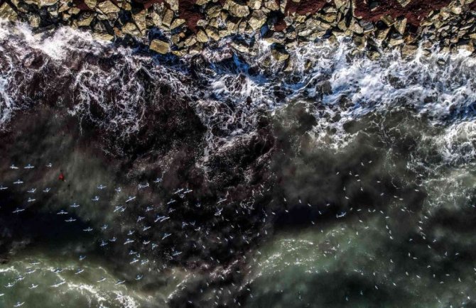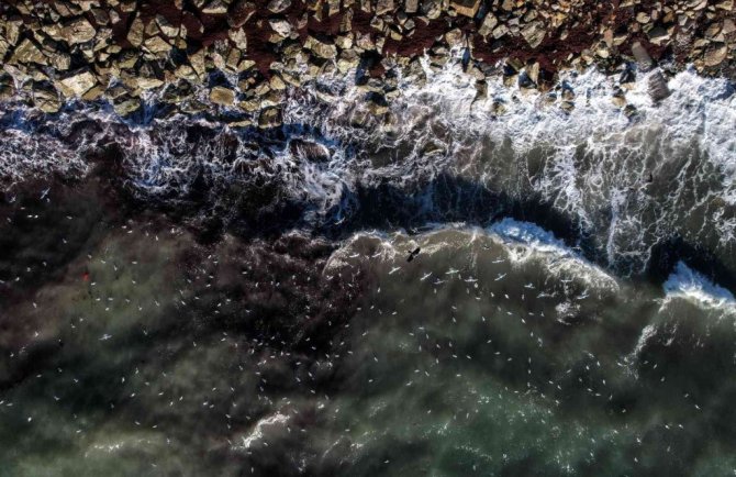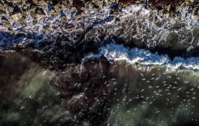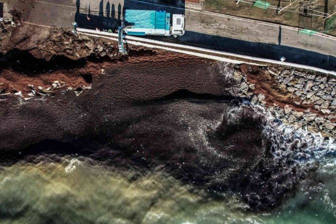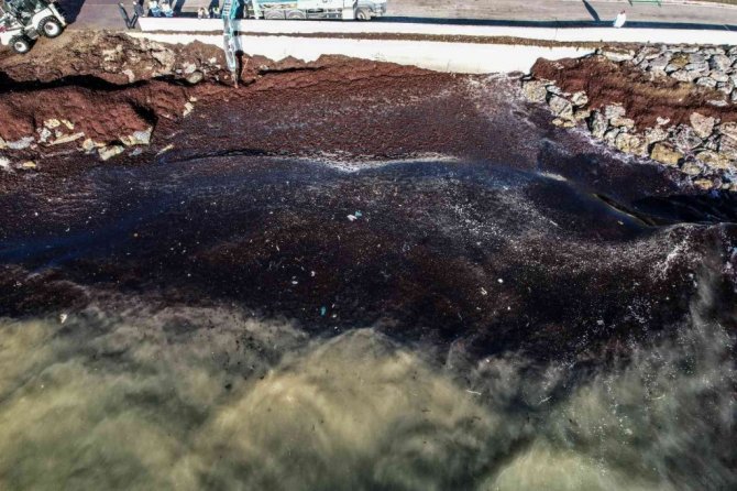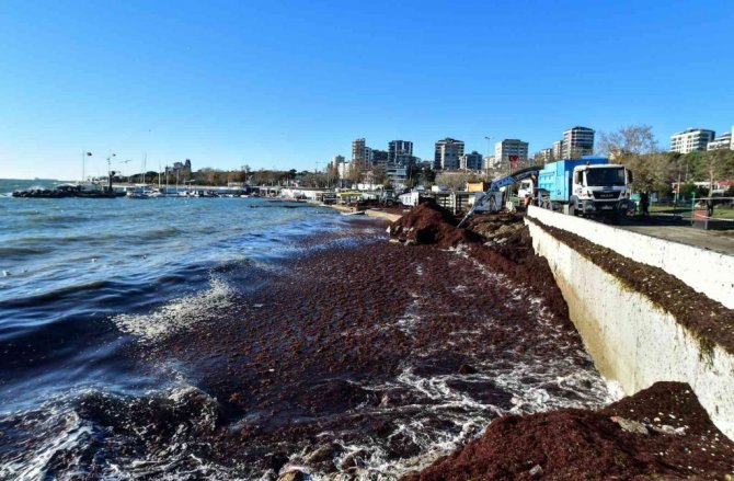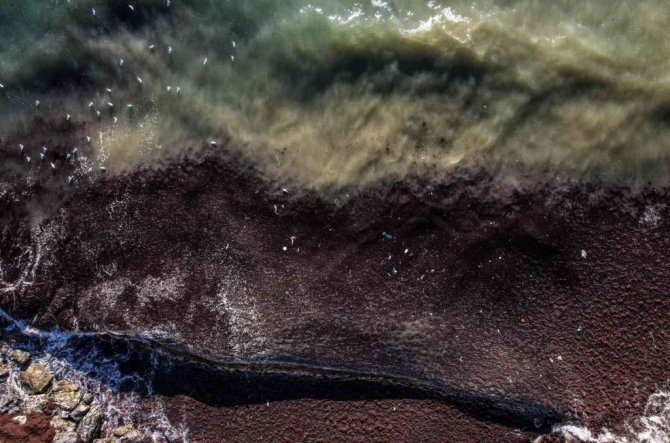 İstanbul'da etkili olan şiddetli lodos sonrası Caddebostan sahiline vuran atıklar havadan ve sualtından görüntülendi.