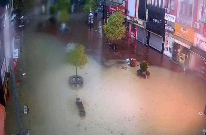 Şiddetini artıran yağış sonrası caddeler göle dönerken, bazı esnaflar iş yerlerini su basmaması için bariyer kursa da dükkanlar sular içerisinde kaldı. O anlar cep telefonu ile kaydedildi.